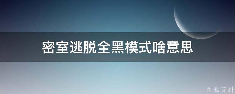 密室逃脱全黑模式是指在密室逃脱游戏中,玩家需要在完全黑暗的环境中进行逃脱。这种模式通常会考验玩家的勇气、智慧和团队协作能力。在全黑模式下,玩家需要依靠自己的直觉和判断力来寻找线索和解锁谜题,同时需要保持冷静和镇定,以应对各种挑战和意外情况。