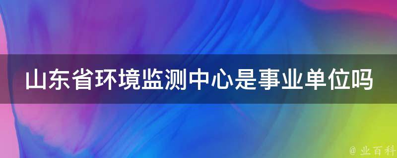 山东省环境监测中心是事业单位。山东省环境信息与监控中心是山东省环境保护厅直属事业单位,主要职责是厅机关环境信息网络建设及运行管理,全省环境自动监测系统建设运行管理,全省机动车排气污染监控,开展环境信息和监控技术研究、培训。