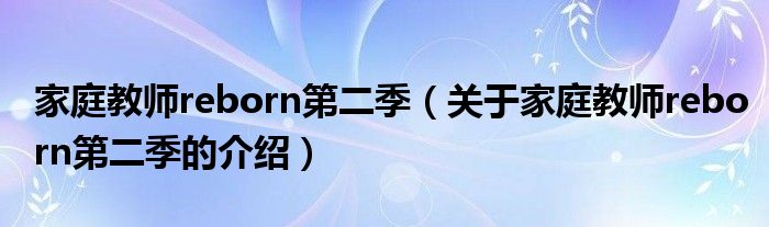 大家好,小夏来为大家解答以上的问题。家庭教师reborn第二季,关于家庭教师reborn第二季的介绍很多人还不知道,现在让我们一起来看看吧!