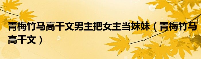 大家好,我是小科,我来为大家解答以上问题。青梅竹马高干文男主把女主当妹妹,青梅竹马高干文很多人还不知道,现在让我们一起来看看吧!