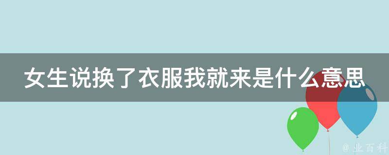女生说换了衣服我就来意思是女生可能希望在见面之前做一些准备工作,例如整理仪容、整理服装等。换衣服可能需要一些时间,她在表达她的耐心和等待。此外,她也可能想强调她已经做好了见面的准备,希望对方也能尽快到场。