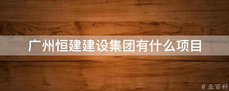 广州恒建建设集团的项目有:台山市看守所修缮工程、韶关市交通运输服务中心修缮工程、恢复新会商业大厦资产修缮加固补强改造项目等。广州恒建建设集团经营范围包括土石方工程服务、工程排水施工服务、城市地铁隧道工程服务、水井钻探施工、室内装饰、设计、建筑劳务分包、桩基检测服务、基坑监测服务、基坑支护服务、建筑工程后期装饰、装修和清理等。