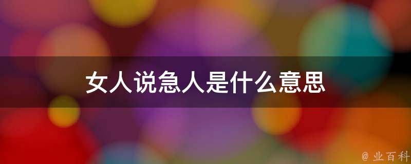 当女人说急人意思是她感到着急、焦虑或不耐烦。这可能因为她面临一些问题或挑战,需要尽快解决或找到解决方案。她可能感到时间紧迫,需要采取行动来解决问题。这种情绪可能表现为口头禅或口头禅,以表达她的急躁和不耐烦。