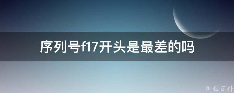 序列号f17开头不是最差的。序列号只是用于标识产品身份和生产信息的一系列数字或字母组合,它与产品的质量、性能、功能等无关。在选择电子产品时,需要考虑产品的品牌、型号、规格、性能、价格等多个因素,而不是仅仅关注序列号。
