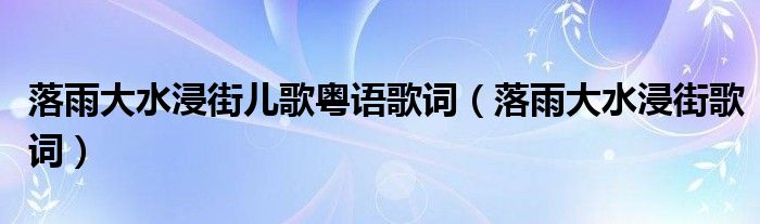 大家好,小华来为大家解答以上的问题。落雨大水浸街儿歌粤语歌词,落雨大水浸街歌词这个很多人还不知道,现在让我们一起来看看吧!