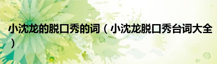 大家好,小联来为大家解答以上的问题。小沈龙的脱口秀的词,小沈龙脱口秀台词大全这个很多人还不知道,现在让我们一起来看看吧!