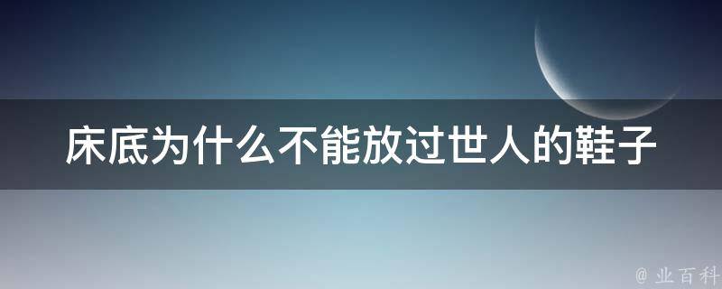 床底不能放过世人的鞋子,是因为在风水学上,鞋子有邪之阴,若放在床下则有外邪入侵的意思,容易招惹祸患,引来意外之灾。此外,床底本身就比较潮湿阴暗,若将鞋子放在床下,时间久了之后鞋子容易出现发霉、发黑的情况,并且还会滋生细菌。