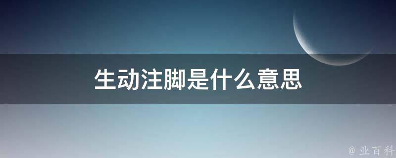 生动注脚是一种注释方式,它通过用生动形象的语言解释或补充原文的内容,使读者更好地理解文本。生动注脚可以是插图、比喻、对比、举例等形式,它不仅可以增加阅读趣味,提高记忆效果,还可以帮助读者深入理解文本中的细节和含义,从而更好地理解整个文章。在阅读理解和写作中,生动注脚是一种常见的技巧,可以提高文章的质量和阅读体验。