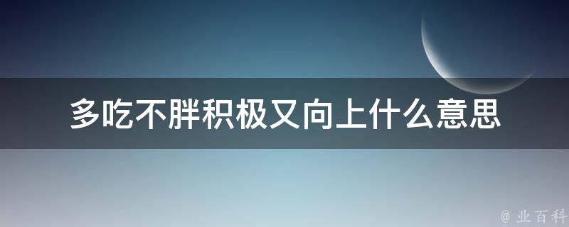 多吃不胖积极又向上的意思是鼓励人们积极向上,并且不要过度沉溺于过去的痛苦或不愉快的事情,要开心地活在当下,享受美食,同时注意饮食健康,保持良好的饮食习惯。这句话可以用于鼓励朋友或亲人保持积极乐观的生活态度,享受生命中的美好时刻。