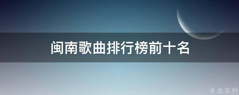 闽南歌曲排行榜前十名分别是《爱拼才会赢》《浪子的心情》《世界第一等》《爱情一阵风》《欢喜就好》《酒国英雄》《爱情恰恰》《你若安好,便是晴天》《爱人跟人走》《月娘啊听我讲》。这些歌曲涵盖了不同的风格和主题,在闽南地区有着广泛的传唱度和影响力,是当地文化和音乐的重要组成部分。