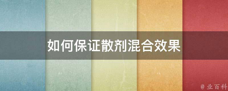 如何保证散剂混合效果