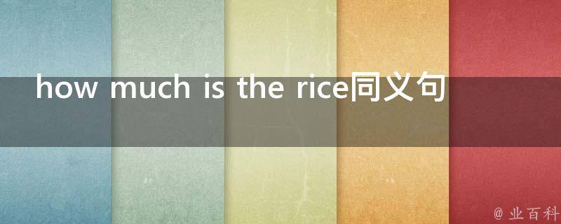 how much is the rice同义句是:Whats the price of the rice?how much is the rice的意思是大米多少钱。Whats the price of the rice的意思是大米的价格是什么。