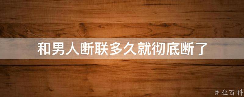 和男人断联三个月以上就彻底断了。一般在分手三个月后双方都没有联系的话,就已经说明这段感情已经彻底结束了。这个时候如果想去挽回,基本上没什么戏了,从一段感情走出来的两个人,女生往往比男生更绝情,如果这个时候想要复合多半是没戏。