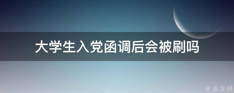 大学生入党函调后会被刷。入党需要经过一定的程序和审核,函调信只是其中的一个环节。学校党组织会有专人负责考察入党学生,符合条件的学生才会被确定为入党积极分子,成为入党积极分子后,还需要经过一段时间考察,经过学校相关部门领导开会决定学生谁能成为预备党员,成为预备党员后,再次经过一段时间的考察,学生通过考察才可能成为正式党员。
