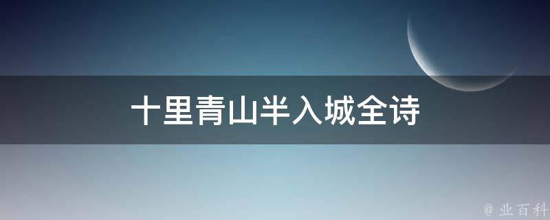 最佳答案十里青山半入城出自明-沈玄《过海虞》,全诗为:吴下琴川古有名,放舟落日偶经行。七溪流水皆通海,十里青山半入城。齐女墓荒秋草色,言公家在旧琴声。我来正值中秋夜,一路哦诗看月明。译文:吴地的琴川自古有名,傍晚时分乘着船偶然经过。常熟县城七条小河流入大河通往大海,县城城垣跨山而筑将部...