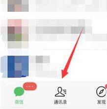 1、打开微信,点击通讯录。