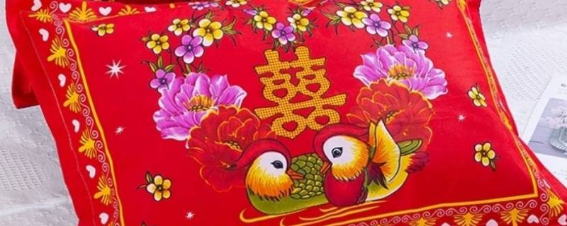是绣有鸳鸯的枕头,多为夫妻所用,同合欢被一样,可作为新娘的陪嫁。古人称鸳鸯为匹鸟,鸳鸯总是形影不离,飞则共振翅,游则同嬉水,多用于形容夫妻恩爱,鸳鸯枕作为陪嫁则是为祝福夫妻恩爱,白头偕老,永不分离。