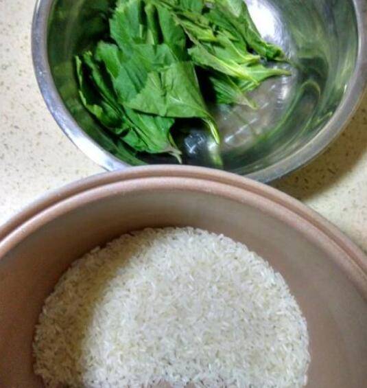1、准备食材:冬寒菜 1小把、大米、清水。大米用清水先煮白粥。