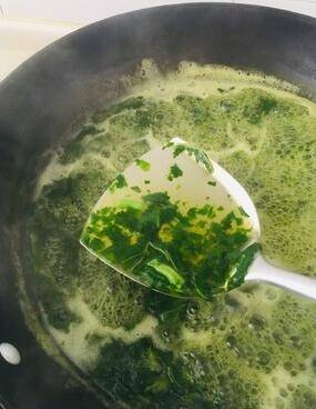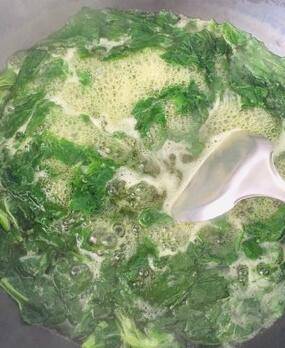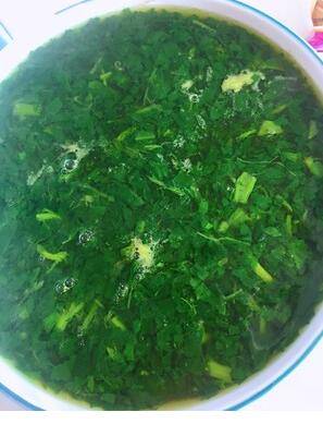 5、剁到菜叶都成很小块状,汤呈现浓稠状态就可以了,加适量盐和鸡精调味即可。