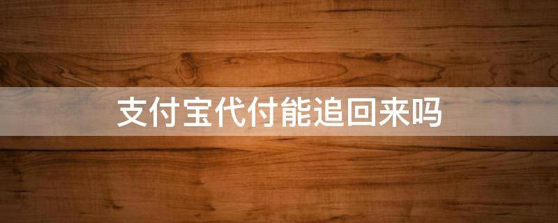 最佳答案支付宝代付不能追回,支付宝代付一旦交易成功,钱就会自动转到对方的账户中,这种情况发生时,可以联系客服和报警处理。支付宝(中国)网络技术有限公司是国内的第三方支付平台,致力于提供“简单、安全、快速”的支付解决方案。支付宝公司从2004年建立开始,始终以“信任”作为产品和服务的核心。...