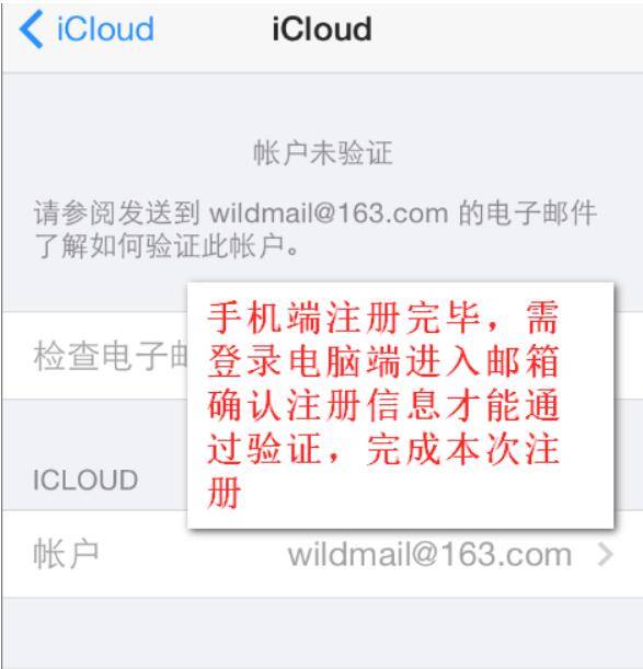13、完成创建之后会回到icloud的验证界面,此步骤的作用就是验证刚才用于Apple ID帐号的邮箱地址是否正确,如图所示。