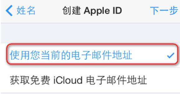 你申请一个icloud的邮箱地址,建议选择前者,毕竟邮箱多了要一个个记住也是一件麻烦的事。设置好之后到达下一步。