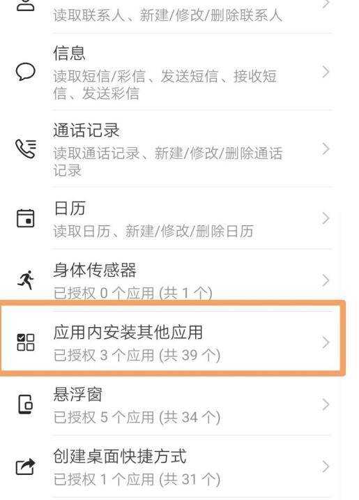 然后我们在权限里面找到应用内安装其他应用。