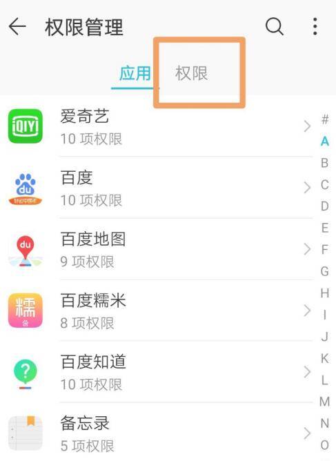 在应用里面选择权限管理。