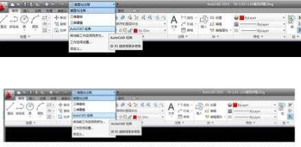 若不是Auto CAD经典模式,则可以通过重新选择模式来重置。点击工具栏的倒三角,有模式选择,选择Auto CAD经典模式。