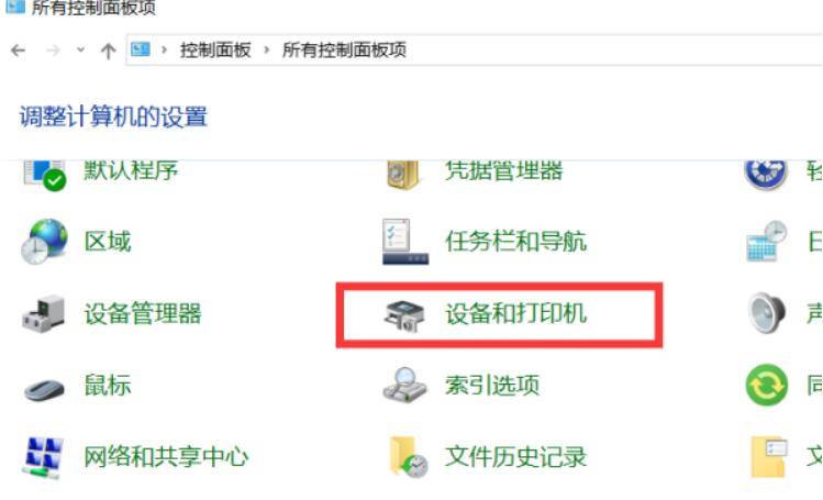 2、进入控制面板后,可以看到电脑上所有设备的设置选项,在这些选项当中找到“设备和打印机”,并点击进入“设备和打印机”。