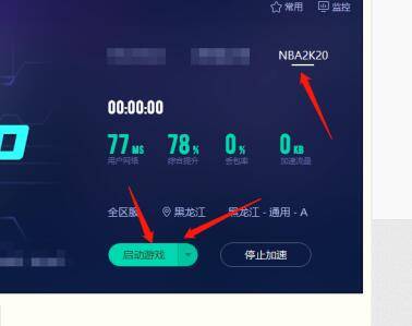在选择加速器尽量选择带试用的,或者按时算费用的,这样比较划算。进入加速器页面,我们要加载NBA2k20游戏,点击开始加速。