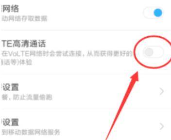 4、然后点击启用VoL高清通话选项右侧的关闭按钮,即可取消手机上的hd。