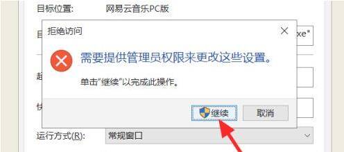 回到属性页面,点击确定,使用管理员身份点击继续就可以将电脑软件图标恢复。