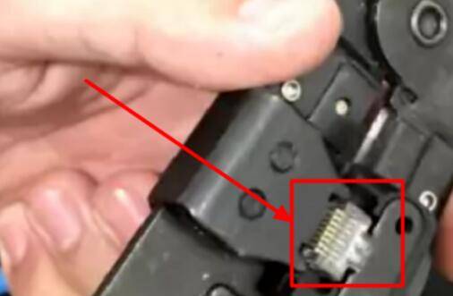使用水晶头压线钳夹紧,与水晶头铜片紧贴,听到“咔”的一声,即完成。。