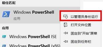 1、在左下角的任务栏中输入“powershell”,右击选择“以管理员身份运行”。
