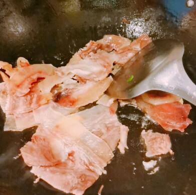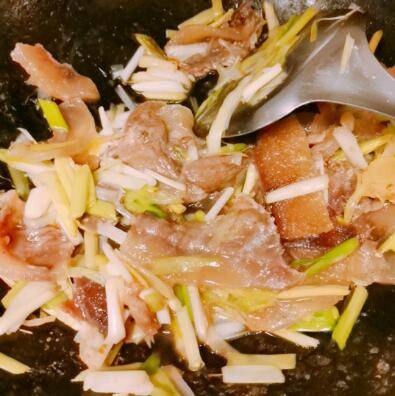 4、把带皮牛肉炒一炒先盛出。