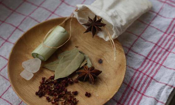 将香料放入调料包中,冰糖和葱不用。