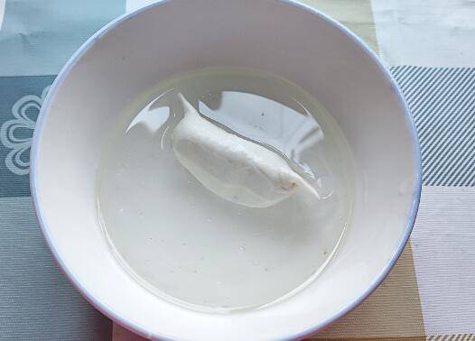 4、将烤了一次的饺子再次在碗里滚几圈,甩掉多余的水。