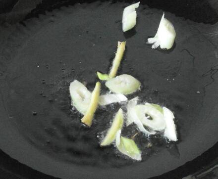 锅内油热后,下入葱姜爆出香味。
