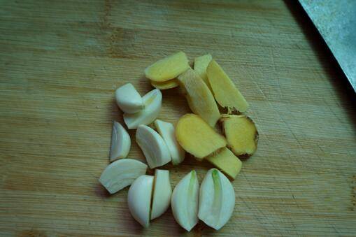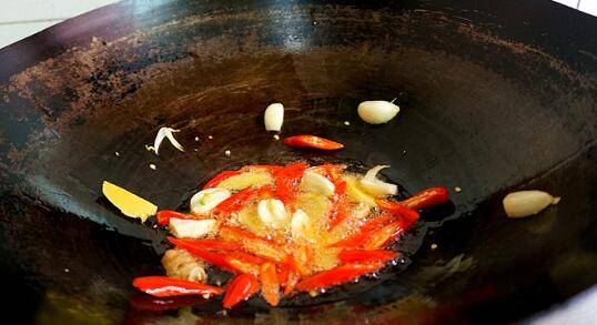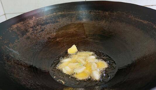 7、锅里上油,小火放入大蒜生姜末爆香。