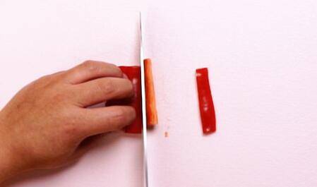 4、倒入红椒段、盐、鸡粉,翻炒均匀。