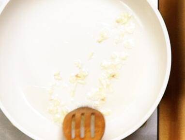 2、锅中倒油,倒入蒜末,大火爆香。