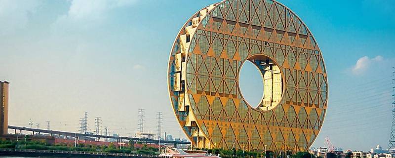 广州圆大厦,原名铜钱大楼。2013年9月24日,广州“铜钱大楼”经过10万元征名,已正式命名为“广州圆大厦”。广州圆大厦位于广东省广州市荔湾区白鹅潭经济圈最南端,是由意大利人约瑟夫设计的一座近似圆形建筑物。大楼将建成138米高、外圆直径146.6米、内圆直径47米的33层建筑。
