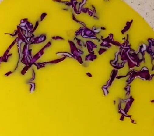 4、蛋液没有定性时,撒入紫甘蓝丝。