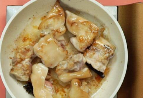 3、食用油5ML,八角1个,桂皮1块,冰糖20克,小火翻炒糖色,倒入猪蹄,小火煎至猪蹄上色。