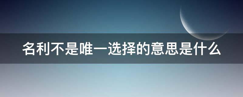 名利不是唯一选择的意思是什么