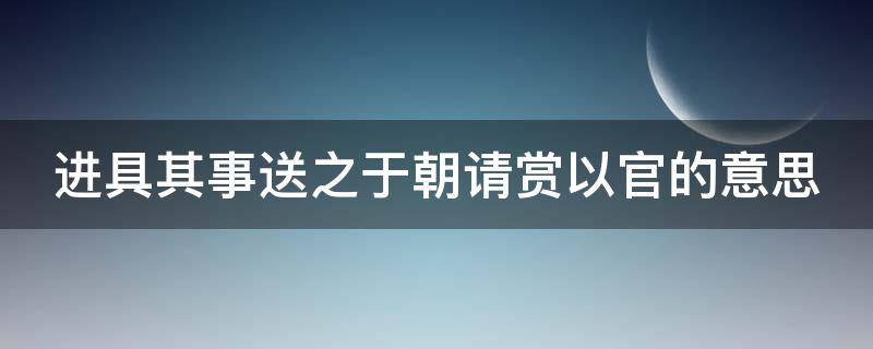 最佳答案进具其事送之于朝请赏以官的意思是:郭进将他的这件事写成报告上报给了朝廷,请求给他一官半职。出自北宋欧阳修《归田录》。郭进为他请赏一官是因为郭进当初对他许诺说,如果能够为郭进取得刘继元一城或一寨的地盘,郭进就向皇帝请求赏他,体现郭进不计个人恩怨、公事为重的品格。太祖后来赏其一官...