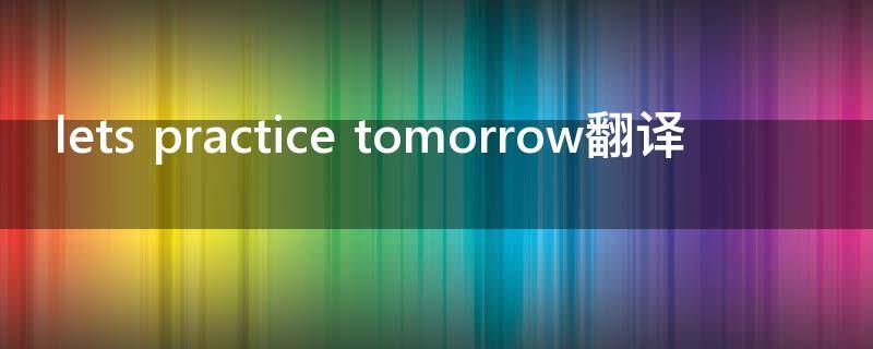 最佳答案lets practice tomorrow翻译是让我们明天练习。翻译是在准确、通顺、优美的基础上,把一种语言信息转变成另一种语言信息的行为。英语是一种西日耳曼语支,最早被中世纪的英国使用,并因其广阔的殖民地而成为世界使用面积最广的语言。英国人的祖先盎格鲁部落是后来迁移到大不列颠岛地区的日耳曼部落...