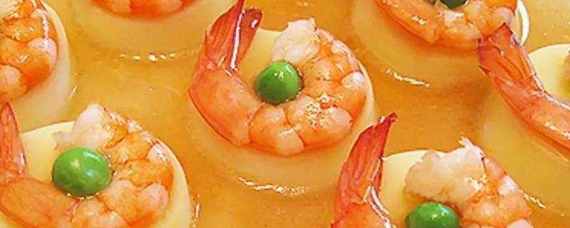 9、然后把处理好的虾仁放在微凝固的鸡蛋豆腐表面。再上锅蒸2分钟。