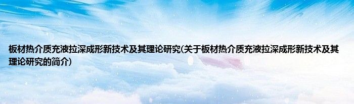 大家好,板材热介质充液拉深成形新技术及其理论研究,关于板材热介质充液拉深成形新技术及其理论研究的简介很多人还不知道,现在让我们一起来看看吧!